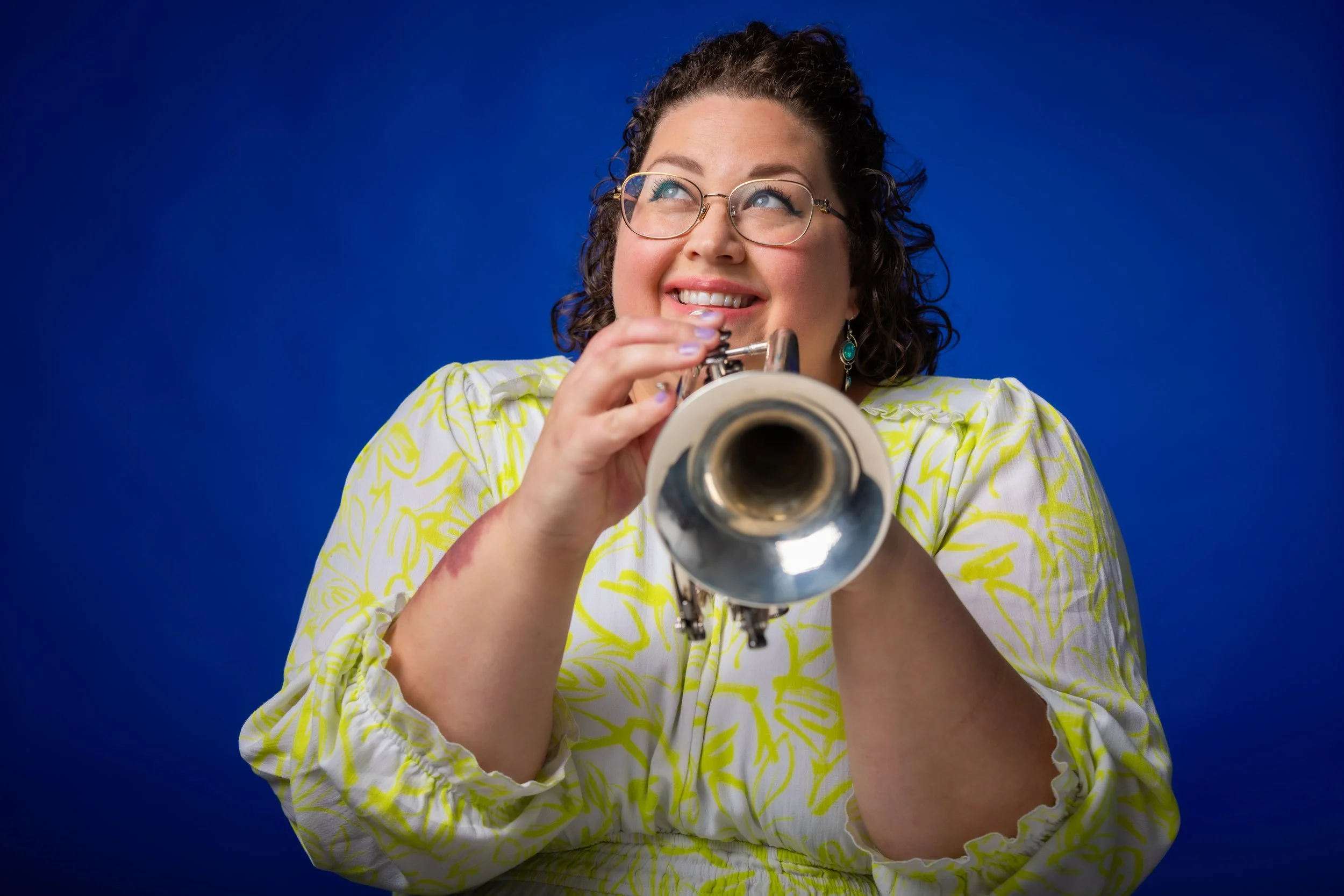 Jen is an avid supporter of new music for cornet and flugelhorn, having commissioned and premiered solo works by Lucy Pankhurst, Dorothy Gates, Kevin Day, Andrea Hobson, and Jen Mitchell for her premiere solo album Enigma. Her work on Enigma received overwhelmingly positive reviews and was nominated for the 4barsrest Album of the Year, a silver medal in the Global Music Awards, and winner of the 2023 American Prize in brass performance. Jen has served on the board of directors for the Fountain City Brass Band, the Athena Brass Band, the Visionary Panel for the National Youth Brass Band of America, and currently as the column editor for the International Trumpet Guild’s cornet column. As a clinician, Jen regularly performs and presents at national and international festivals including: the International Trumpet Guild Conference, Brass Institutes of America, International Women’s Brass Conference, PRIZM Chamber Music Festival, and the Eastman Summer Trumpet Institute.
